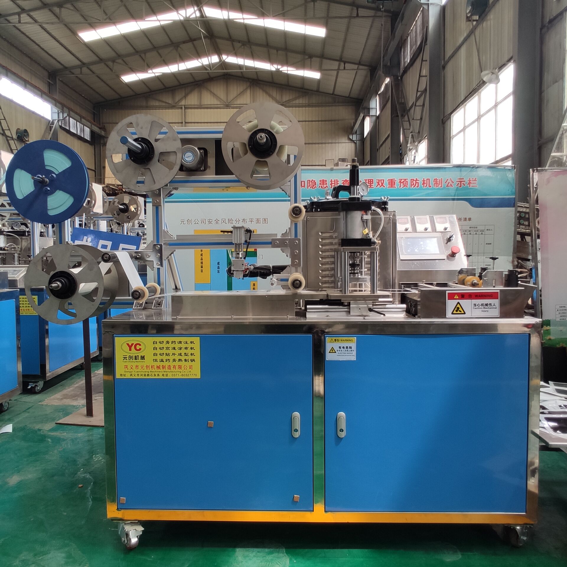 膏藥機是怎樣來制作藥貼的呢,通常是開始的時候用戶將制藥貼的原料、膏藥膠和膏藥基質(zhì)攪拌均勻,經(jīng)過不銹鋼熬制鍋加熱熬煉,達到我們的要求,這樣做的目的主要是為了進行下一步的滴注灘涂涂布。講這些加工好的膏藥在設備上進行觸摸屏的控制,滴注涂抹在膏藥布上。這就需要一臺膏藥涂布機來很好的完成這一過程。一般膏藥機上面都會有裁剪藥貼的配件,輥切的比較的多,根據(jù)需要做成的成品效果大部分都是圓形方形長方形異型月牙兒等等。這一過程稱之為膏藥成型機或者為膏藥定型機。你認為這樣就結束了嗎,不是,還要給這成型的膏藥片打些小孔,主要依據(jù)的是滲透的原理,達到增加藥理的作用。這就是膏藥打孔機。經(jīng)過了解,您就知道每一片膏藥貼都不簡單吧,都要好好制作。